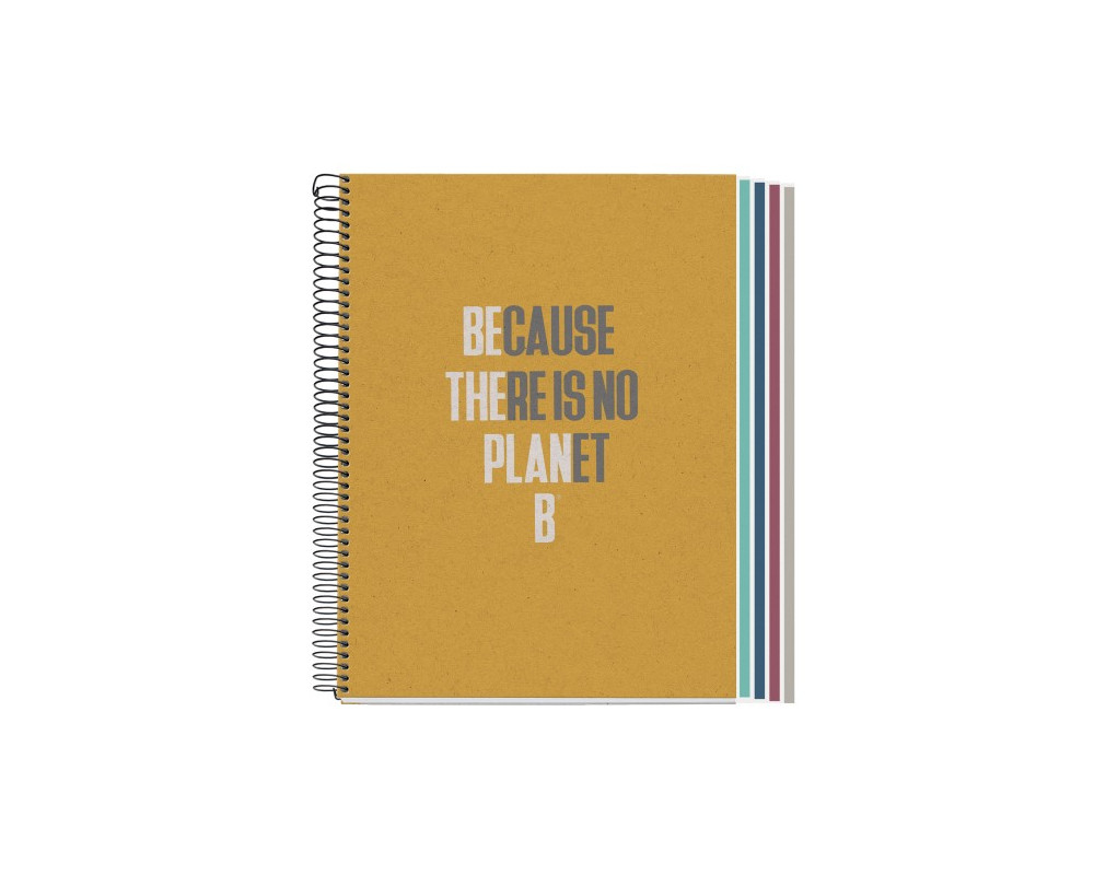 Block de espiral reciclado de 120 HOJAS CUADRICULA de 5 mm, 4 bandas de color, cabecera para títulos, hojas microperforadas para un arranque limpio y 4 taladros para archivar. HOJAS recicladas tamaño A4 (210 x 297 mm). Gramaje de 80 g/m². Impresión offset de alta calidad del interior. Papel interior y cubiertas procedentes de papel y cartón 100% reciclado, recuperado post-consumo, con certificado Blue Angel, EU Ecolabel y FSC Recycled Credit.