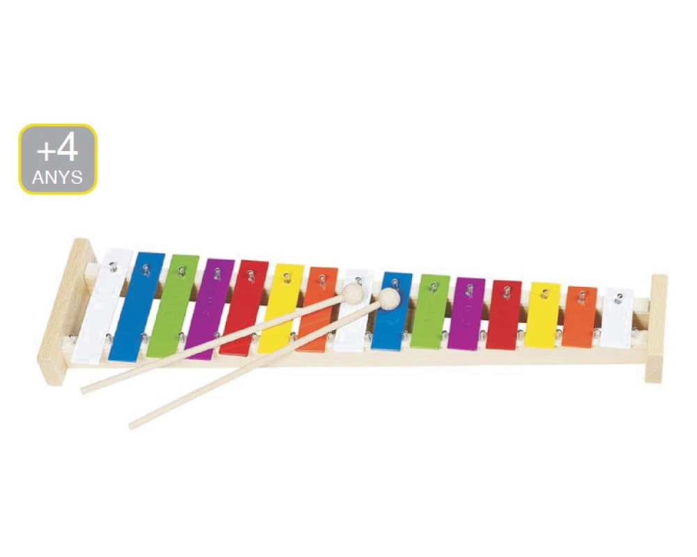 De metall de 42 cm amb 15 tons. Inclou llibre de cançons.